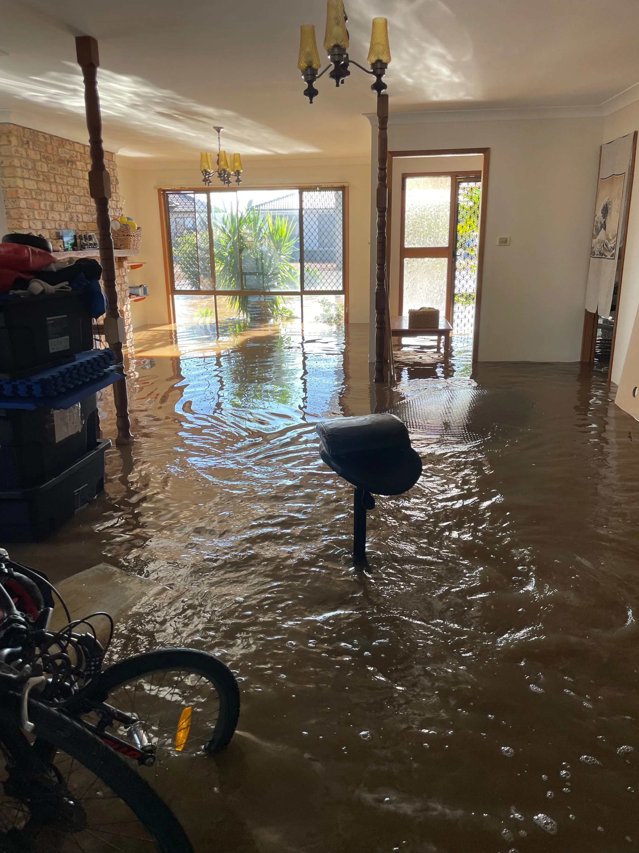 Plan B lasted only two weeks (to the day) as we were flooded out! (see image below) We had it knee deep throughout the house, losing a few big pieces, but fortunately, we had time to prepare and got most things up out of harms way.